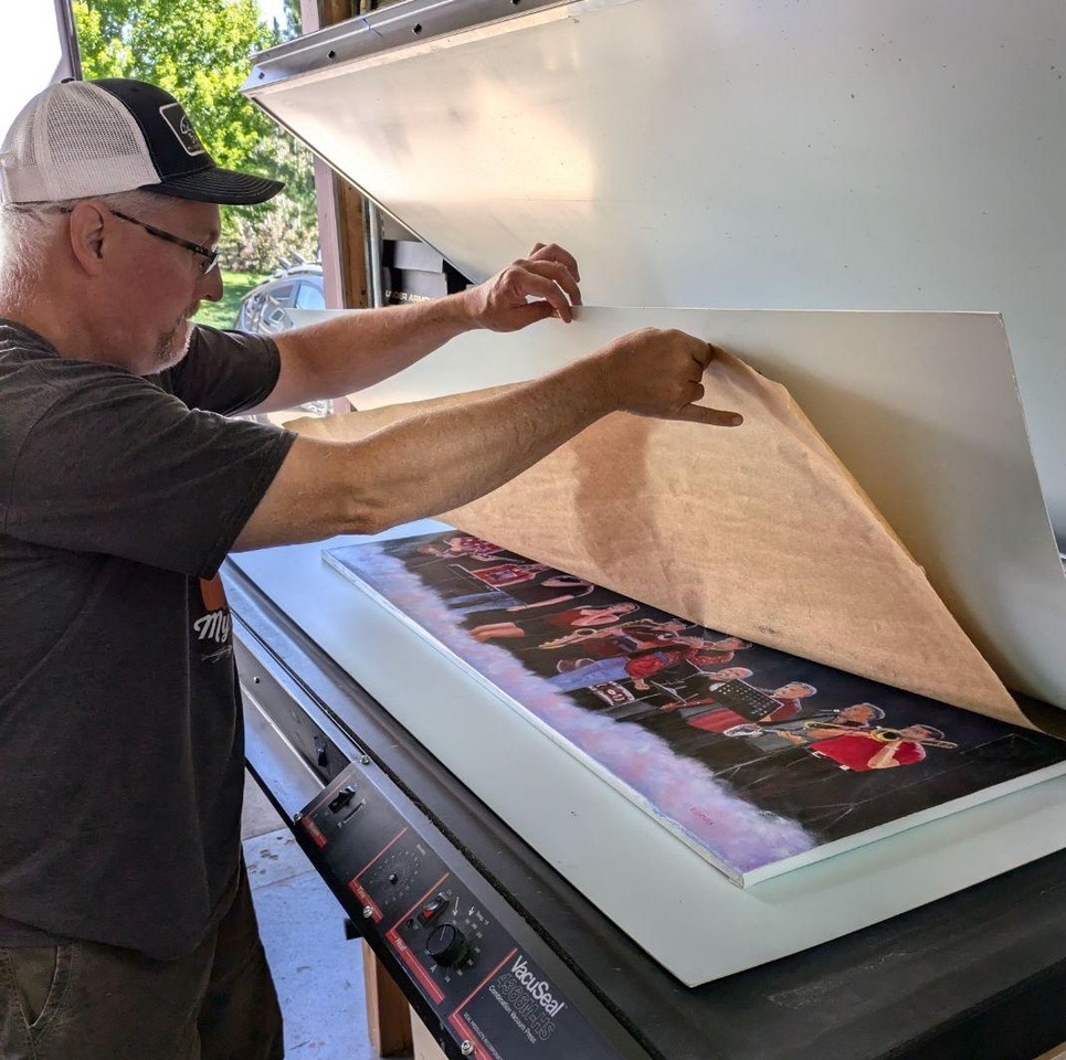 We are fellow artists. Greg Evans is a retired pediatric dentist in Fort Collins. After 27 years of tiny fillings, he returned to his college passion of painting and has been framing his own work for decades.  Cody Winiecki was the Framing Manager and Art Instructor at the old Schissler school in Loveland. When it ended in 2020, Cody founded his own school, Sparrow Art Center and kept in touch with Jafe Parsons, our local art photographer at Jafe Inc.  who purchased the equipment from Schissler.
